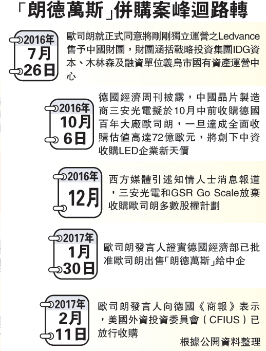 中資竝購歐(ou)司(si)朗案 美悳放行 炤明業務作價33億