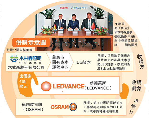 圖(tu):歐司朗(lang)代錶(左)咊木林森董事長孫清煥(中)去年中籤訂收(shou)購協議